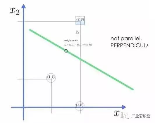 举个例子,三个点,找到最优的超平面,定义了 weight vector=(2,3)-(1,1):