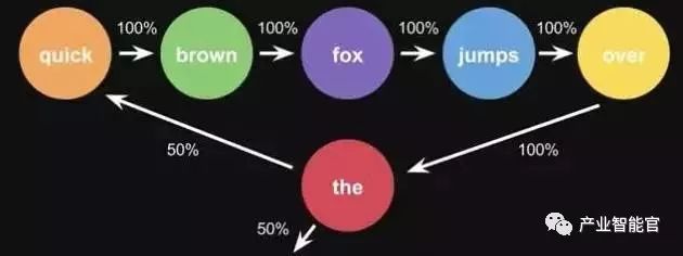 Markov Chains由state(状态)和transitions(转移)组成。例子,根据这一句话 ‘the quick brown fox jumps over the lazy dog’,要得到markov chains。
