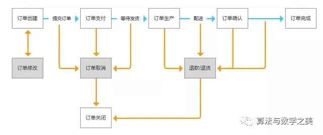 上面说到逆向流程是各种修改订单、取消订单、退款、退货等操作,需要梳理清楚这些流程与正向流程的关系,才能理清订单系统完整的订单流程。