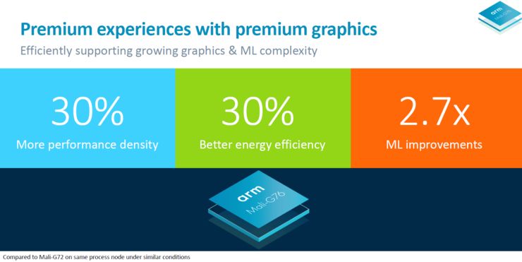 今天,Arm公布了Mali G72的后续产品,也是Bifrost系列的最新产品:Mali G76,目标非常明确:提高单位功耗性能和单位面积性能,并尽可能地赶超竞争对手。Arm承诺,在台积电7nm工艺的支撑下,使用Mali G76的下一代SoC性能可提高50%。