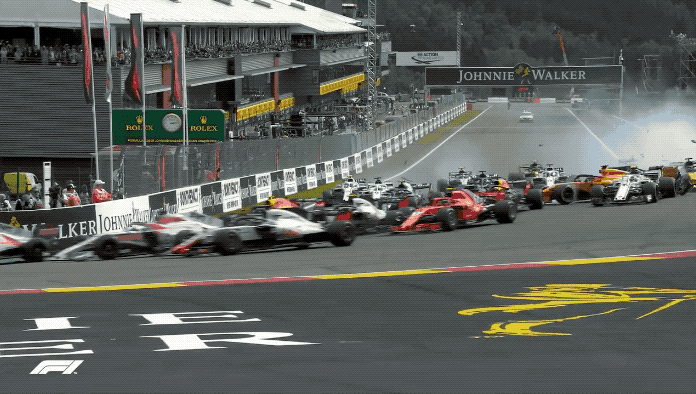 就在F1英国大奖赛正赛的起步阶段,一场严重事故不幸发生。