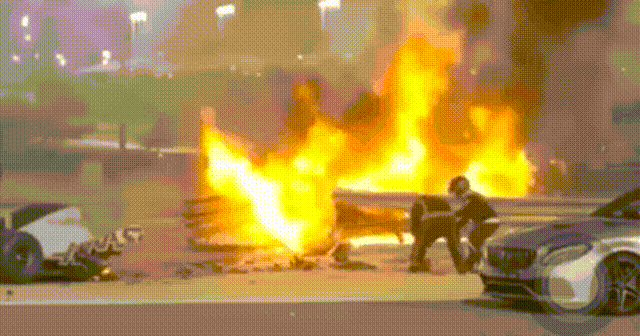 2020年F1巴林大奖赛上,车手格罗斯让驾驶的赛车撞进钢护栏,之后车身燃起熊熊大火。