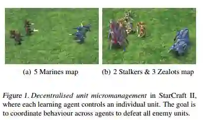 摘要:In many real-world settings, a team of agents must coordinate their behaviour while acting in a decentralised way. At the same time, it is often possible to train the agents in a centralised fashion in a simulated or laboratory setting, where global state information is available and communication constraints are lifted. Learning joint action-values conditioned on extra state information is an attractive way to exploit centralised learning, but the best strategy for then extracting decentralised policies is unclear. Our solution is QMIX, a novel value-based method that can train decentralised policies in a centralised end-to-end fashion. QMIX employs a network that estimates joint action-values as a complex non-linear combination of per-agent values that condition only on local observations. We structurally enforce that the joint-action value is monotonic in the per-agent values, which allows tractable maximisation of the joint action-value in off-policy learning, and guarantees consistency between the centralised and decentralised policies. We evaluate QMIX on a challenging set of StarCraft II micromanagement tasks, and show that QMIX significantly outperforms existing value-based multi-agent reinforcement learning methods.