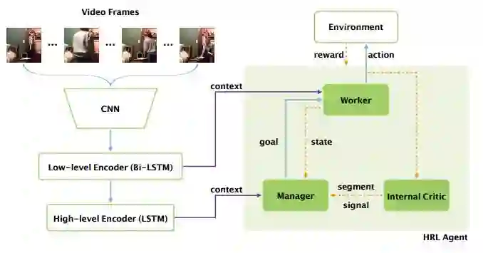 摘要:Video captioning is the task of automatically generating a textual description of the actions in a video. Although previous work (e.g. sequence-to-sequence model) has shown promising results in abstracting a coarse description of a short video, it is still very challenging to caption a video containing multiple fine-grained actions with a detailed description. This paper aims to address the challenge by proposing a novel hierarchical reinforcement learning framework for video captioning, where a high-level Manager module learns to design sub-goals and a low-level Worker module recognizes the primitive actions to fulfill the sub-goal. With this compositional framework to reinforce video captioning at different levels, our approach significantly outperforms all the baseline methods on a newly introduced large-scale dataset for fine-grained video captioning. Furthermore, our non-ensemble model has already achieved the state-of-the-art results on the widely-used MSR-VTT dataset.
