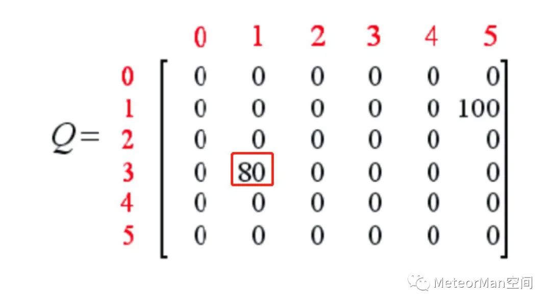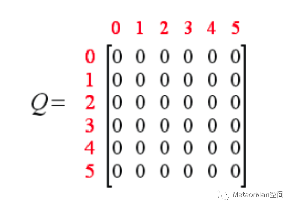 随后我们再创建一个Q表,表示学习的数据和标签信息,即经验矩阵,与R矩阵同阶,初始化为0矩阵。