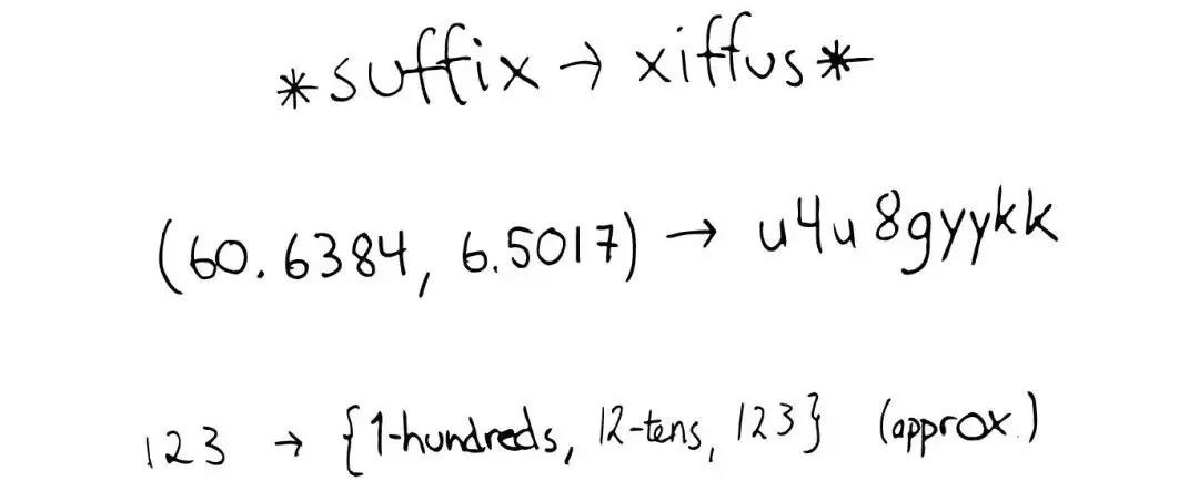 123 -> {1-hundreds, 12-tens, 123}:对于简单的数字,可以为它生成多重形式的Term。