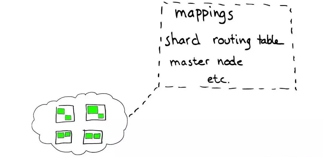 在一个或者多个节点直接,多个绿色小方块组合在一起形成一个ElasticSearch的索引。