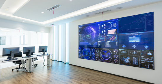 图片中的「作战室」是明略科技上海办公室全新开放的展厅中的亮点之一,能通过轨交运维能力仪表盘真实感受到运行在幕后的地铁大脑的魅力。