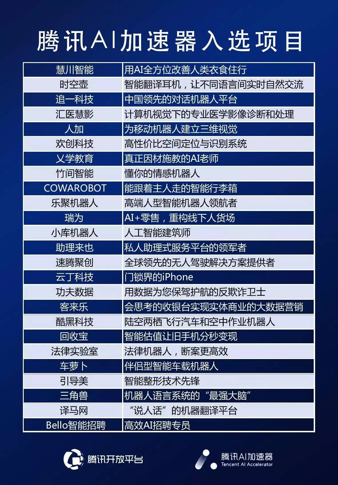 图:腾讯AI加速器入选项目名单