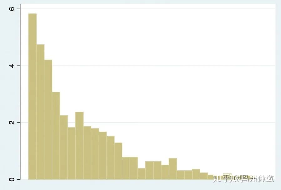 然而生活中的很多回归问题并不符合正态分布,例如典型的奢侈品商城的销量,用户到商城中闲逛,大部分用户基本不买东西,只有少部分用户会进行购买,极少部分用户会购买大量的奢侈品,因此分布常常是这样的: