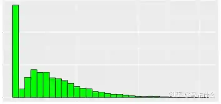 横轴代表了销量取件从小到达排列,纵轴代表了某个销量区间对应的用户数量,这样的分布情况明显不符合高斯分布。