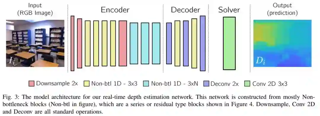 实时框架是搭建一个人类和机器人能够无缝衔接的社会的首要条件。出于这个考虑,作者提出了一种能够在NVIDIA-TX2显卡上以30帧每秒的速度估计深度信息的新颖的实时结构估计框架。
