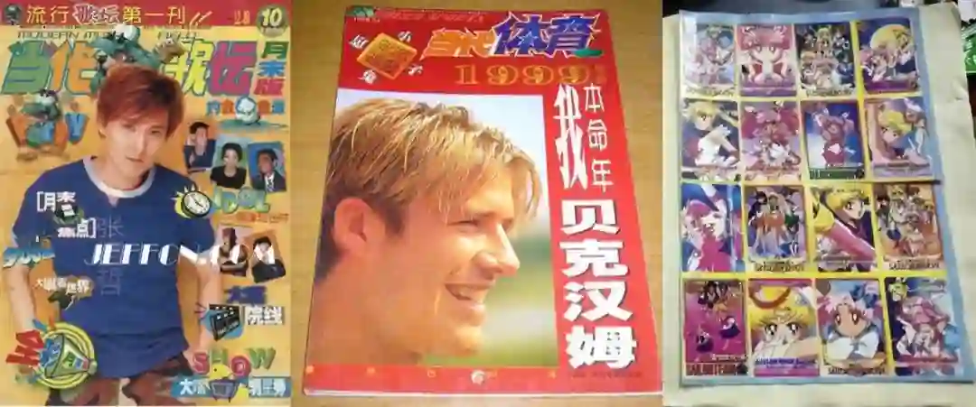 上初中的时候开始看《当代歌坛》、《当代体育》,甚至《精品购物指南》,看完后拿它包书皮。那会还流行贴纸,一整版100多个贴纸,把包好的书皮再贴满了贴纸,就是我最喜欢干的事情之一。