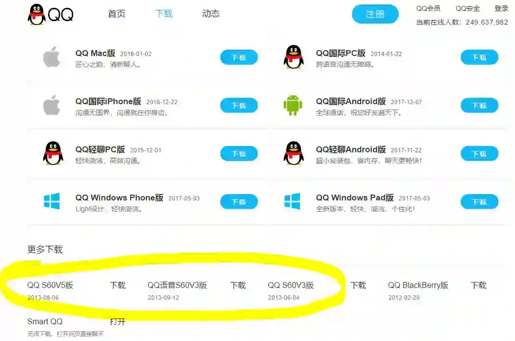 值得一提的是【科技美学】去腾讯官网查证后发现,塞班的多个版本QQ仍旧提供下载链接,并且实测可以下载安装,不是死链。