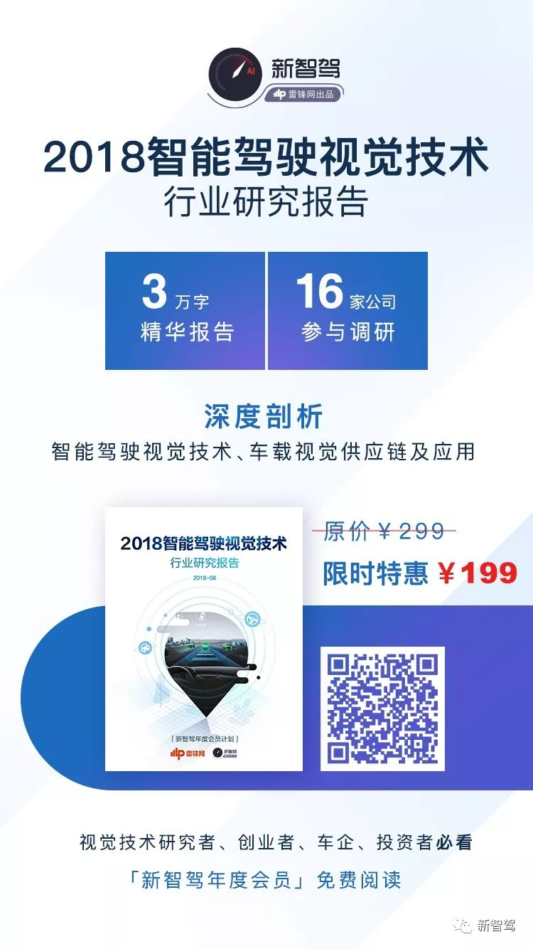 9 月 3 日,雷锋网新智驾正式对外发布了《2018 智能驾驶视觉技术行业研究报告》,对智能驾驶技术感兴趣的读者可加入【新智驾会员计划】免费阅读本报告,也可以通过官方渠道单独购买后进行查阅。
