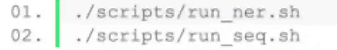 1.在配置完成后,用户输入./scripts/run_seq.sh ,该脚本将进行加入特殊label token,以及对数据集的处理。