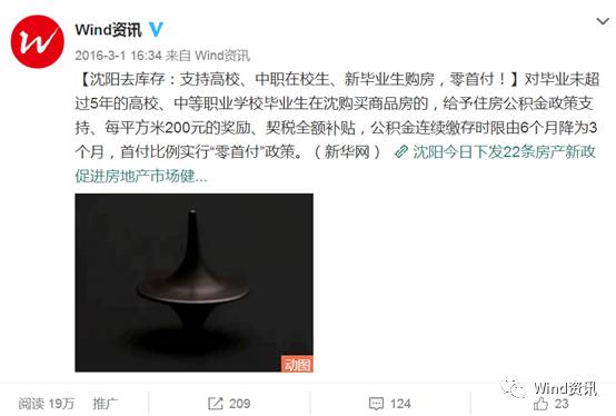 2016年3月1日,沈阳曾下发22项房产新政激励去库存,包括新毕业生可零首付购房、对个人购买住房给予房价补贴和契税补贴、降低二手住房交易税费等等。