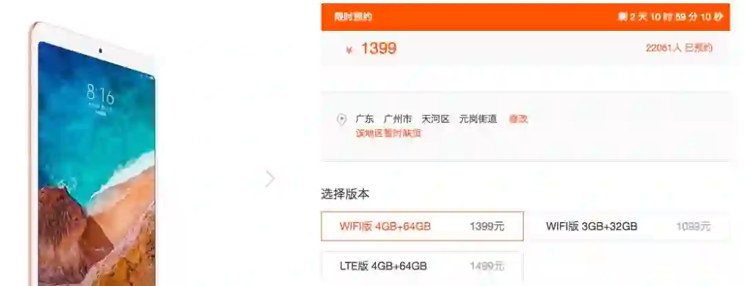 小米平板 4 有三个版本:1099 元的 3+32GB 版、1399 元的 4+64GB 版、1499 元的 4+64GB LTE 版。