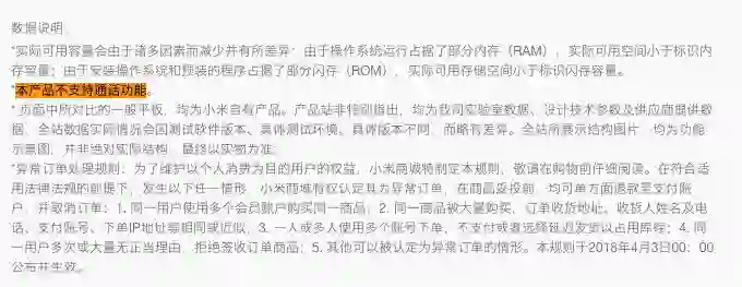 此外,小米平板 4 也没有配备听筒,最关键的是,在官网的相关页面里,小米明确表示这款产品不支持通话功能。