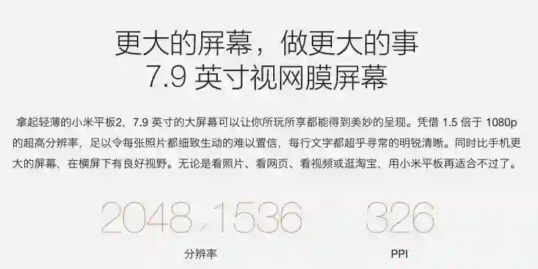不少小伙伴都发现了,小米平板 4 采用的是“全高清”屏幕,分辨率为1920*1200,ppi 为 283,而前三代小米平板都采用了视网膜屏幕。从这点来说,小米平板 4 这方面是有所倒退了。