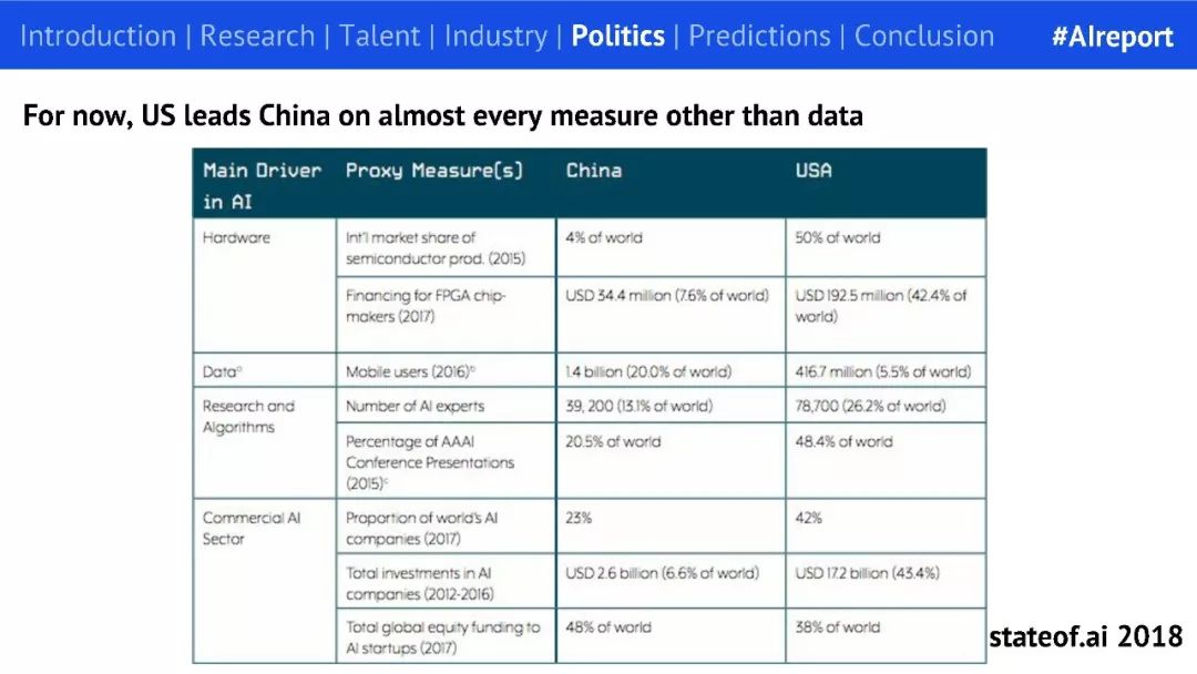 随着 AI 领域竞争的加强,中国、法国、英国、美国、欧盟等相继制定了国家层面的 AI 发展战略,AI 国家主义倾向越来越明显。