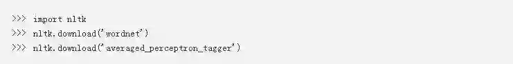 wordnet是一个英语词汇数据库,它可以帮助脚本确定词干。您需要averaged_perceptron_tagger资源来确定一个句子中单词的上下文。