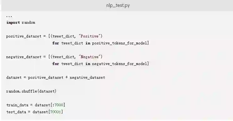 默认情况下,该数据包含所有正面的推文,然后依次跟着所有负面的推文。在训练模型时,您应该提供一个不包含任何偏差的您的数据样本。为了避免偏差,您已经添加了使用random的.shuffle()方法来随机排列数据的代码。