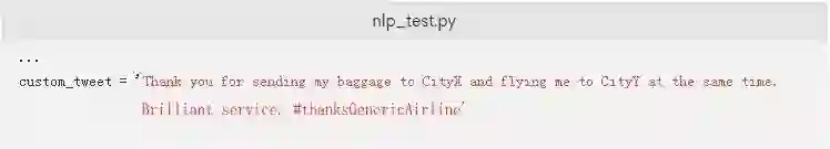 接下来,您可以检查模型对来自Twitter的随机推文的执行情况。将这段代码添加到文件中: