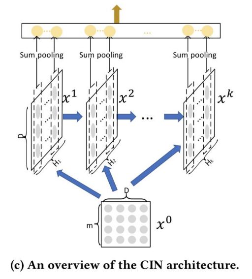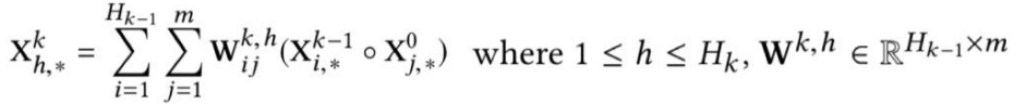 使用 CIN 模型来提取特征交叉。和 DCN 模型一样的是,这里也使用了多层的 cross,每一层的输入也是由第一层和上一层的输入组成,不同的是,xdeepFM 模型的特征交叉是 vector wise 层级的,而 DCN 模型是 bit-wise 的。