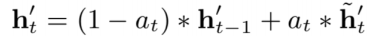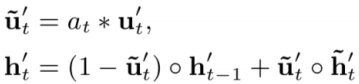 这里作者使用了 attention 权重 at 来取代原始 GRU 中的更新门,表达如下: