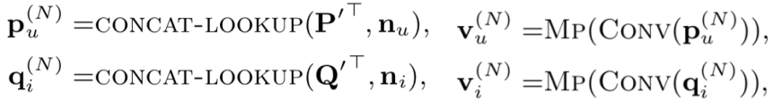 由两部分组组成,其中 user 由 user 交互过的 item 集合来表示,是个 multi-hot 的打分表示,如 [0 0 4 0 0 … 1 5 …],在矩阵中用行表示;item 也由交互过的 user 集合来表示,也是个 multi-hot 的表示,如 [5 0 0 3 … 1 3],在矩阵中用列表示。