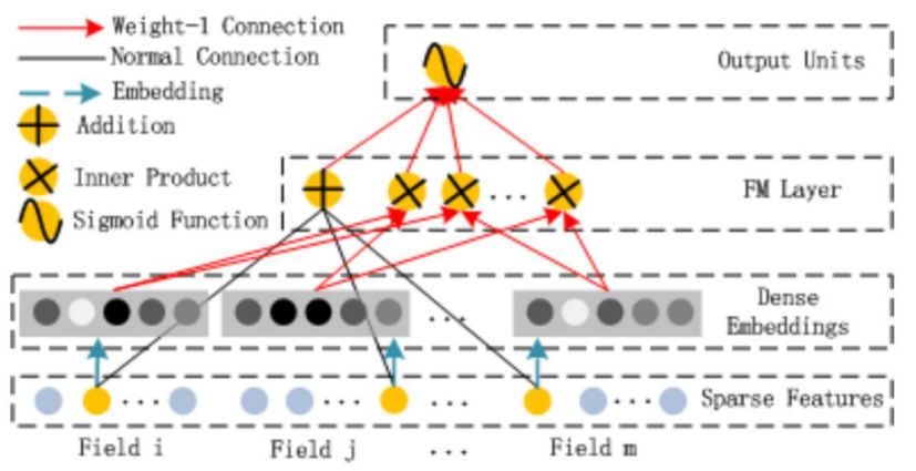 同样道理,如果再加上 userid 的隐向量表达,那么 FM 模型将退化成 SVD++ 模型。可见 MF,FISM,SVD++ 其实都是 FM 的特例。