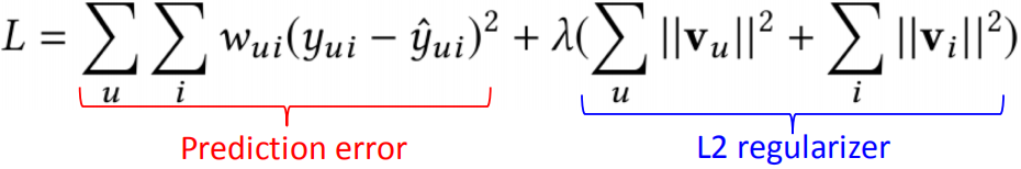 同时,MF 模型引入了 L2 正则来解决过拟合问题。