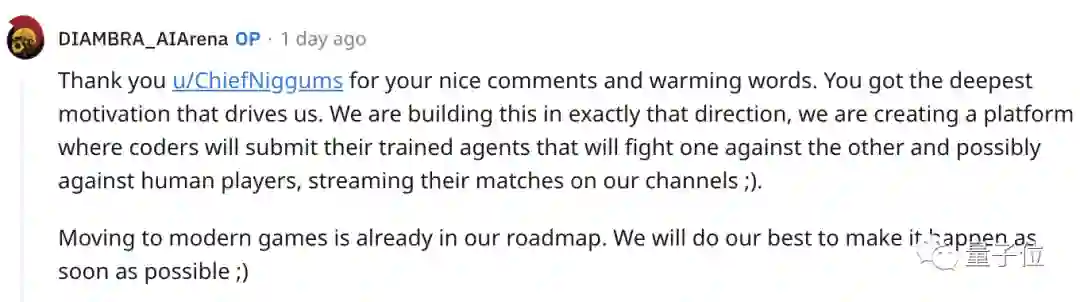 评论区有资深PVP爱好者表示,想要看到这种顶级AI选手互虐的激烈场景,而开发者本人对此非常赞同: