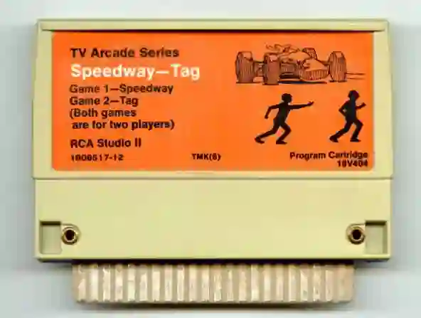 1976 年十月,Joyce 编写了两个动作游戏:Speedway 和 Tag。在 Speedway 里,玩家驾驶一辆小车行驶在头顶上的赛道,与第二个人类玩家比赛。只有一个问题:Studio II 极低的 64 图形分辨率的 32 像素没给细节留下多大空间。