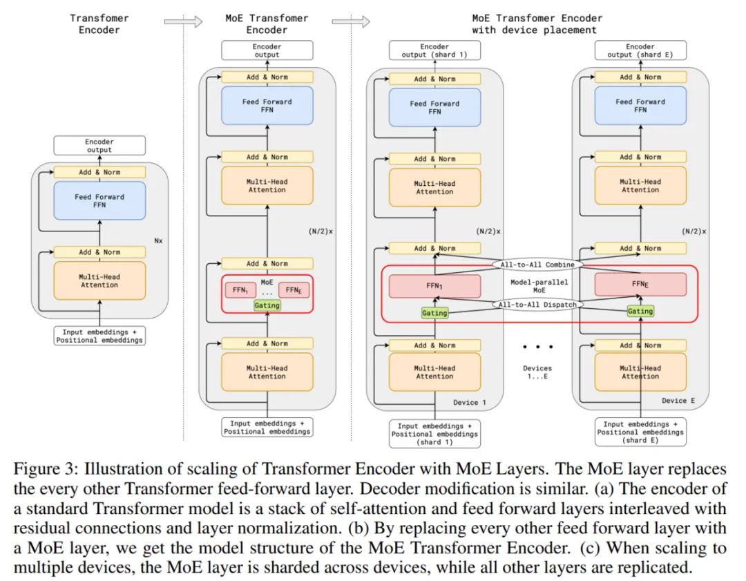 Meta 使用了一种替代方案来利用条件式计算方法,该方法仅为每个训练示例激活模型的一个子集。具体来说,Meta 训练了稀疏门混合专家(Sparsely Gated Mixture-of-Expert)模型,每个 token 基于学习到的门函数馈入到 top-k 个专家前馈(FeedForward)块。他们使用 Transformer 架构,其中每个 alternate Transformer 层中的前馈块都替换成稀疏门混合专家层,后者在编解码器中有 top-2 个门。因此,每个输入序列仅使用所有模型参数的一个子集。