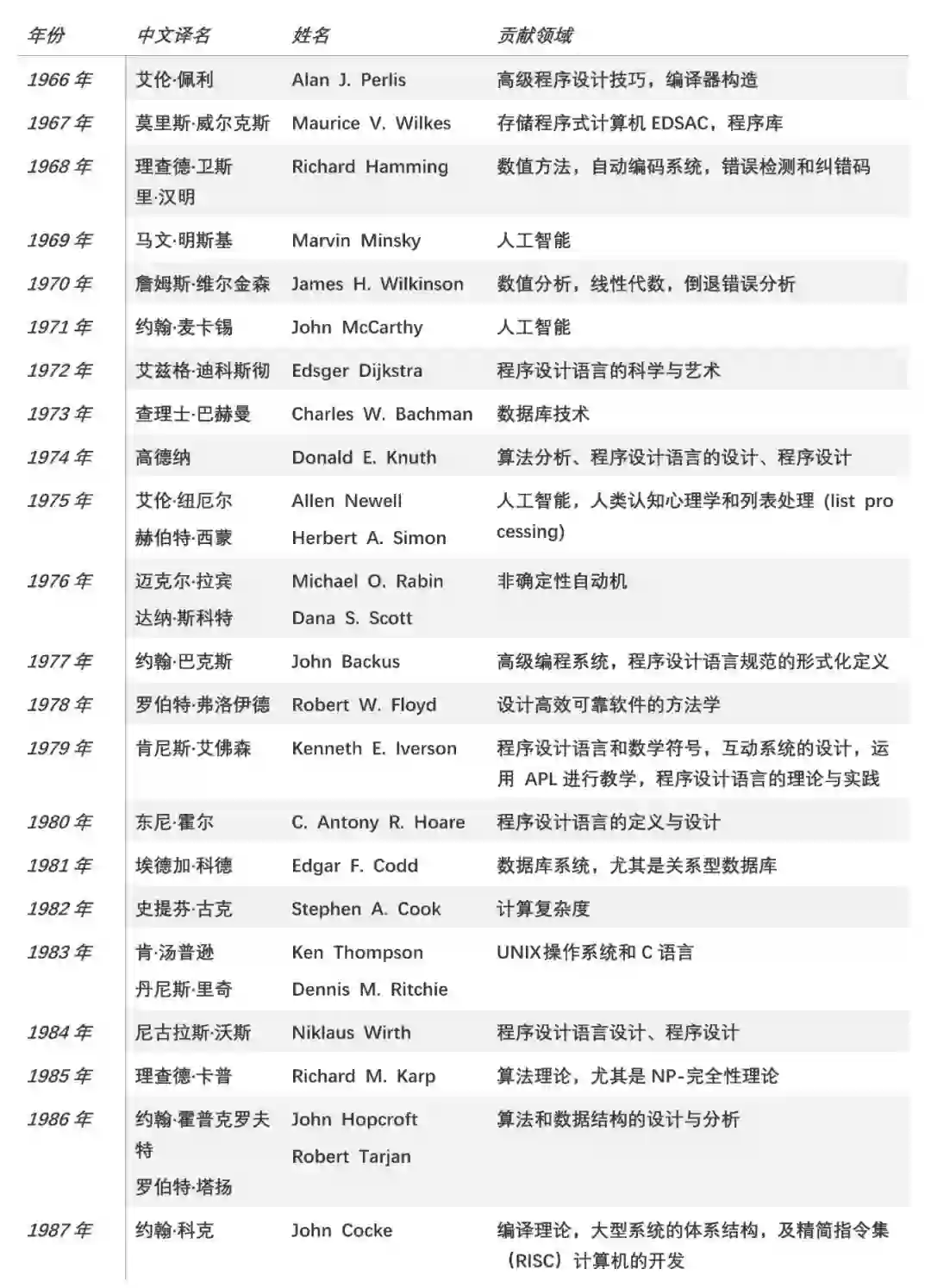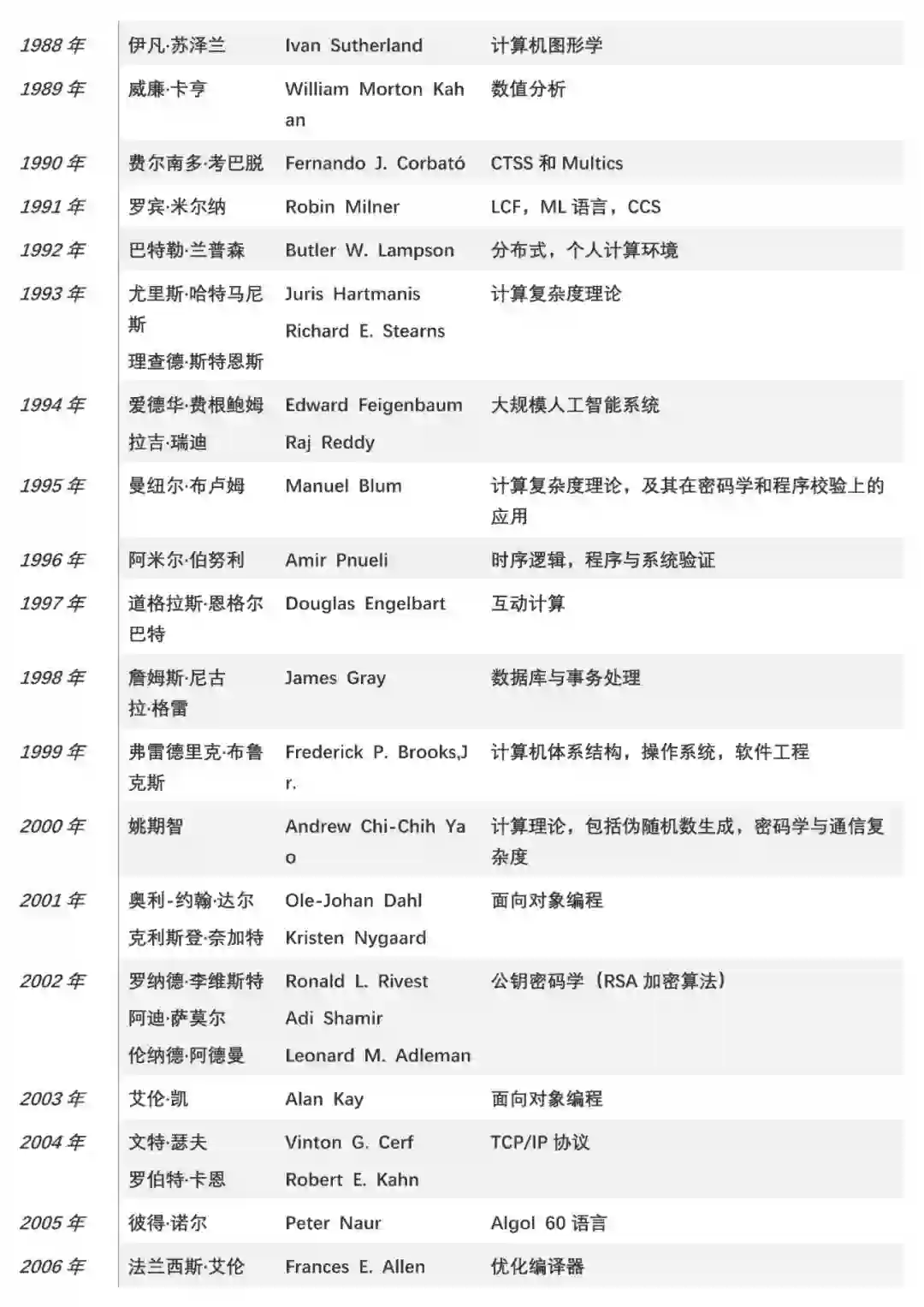 历年图灵奖获得者