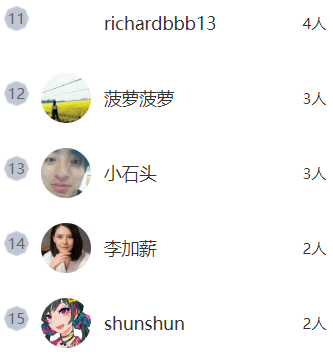 按照活动规则,排行榜名单截止时间为2018年11月26日24:00,获奖名单如下:
