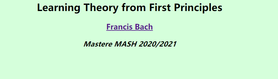 这门课的目的是为最广泛使用的学习架构阐述学习理论的最新结果。本课程面向以理论为导向的学生,以及那些想要对整个硕士课程中使用的算法有基本数学理解的学生。