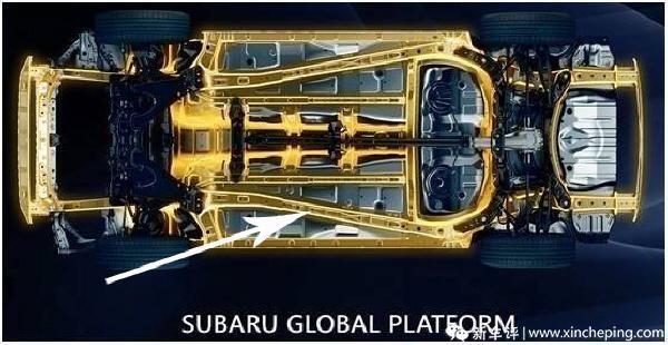 斯巴鲁 XV 是斯巴鲁全新 SGP 平台的“首秀”,有点类似大众的 MQB 平台,在 XV 最大的体现是把上代车型一条直线的底梁掰弯,目的就是让撞击时,整个车架能更好分散从前纵梁而来的冲击力,另一方面车架的刚性也变得更高。