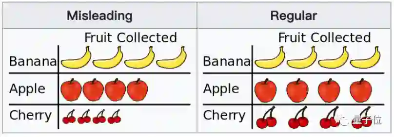 误导性操作指在不影响结论的情况下,利用图标大小等视觉差,故意给读者造成错觉,引导得出与数据不符的结论: