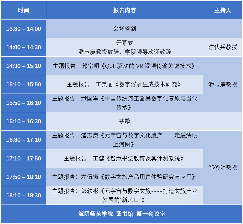 “CSIG图像图形中国行”是由中国图象图形学学会主办的学术活动,旨在推动图像图形学科的普及,加强各高校研究所以及企业间的交流。自2017年4月起,分别在扬州大学、哈尔滨工业大学、兰州大学、杭州电子科技大学、北京交通大学、海南大学、福州大学、西北农林科技大学、佛山科技学院等及深圳、烟台成功举办了80余期,线上线下参会人数累计数万人次,受到业界好评。本次“CSIG图像图形中国行”由中国图象图形学学会(CSIG)主办,CSIG数字文化遗产专委会与淮阴师范学院计算机科学与技术学院及淮安市人工智能学会联合承办,交流主题是“人工智能与数字文化遗产”。
