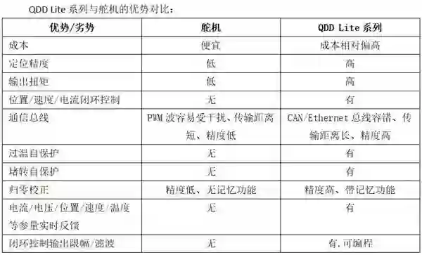 通过上表我们可以发现,QDD-Lite在控制方式、运动范围、供电方式等诸多方面,均比舵机有优势。QDD-Lite系列产品的确能够解决舵机出现的诸多问题,例如,定位精度低、无自我保护程序和通讯距离短且精度低等。对于机器人硬件行业来说,或将迎来一场革新。