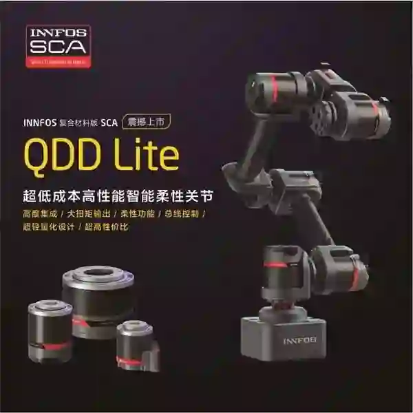 作为高端机器人的智能柔性执行器方案提供商,INNFOS自主研发的智能柔性执行器(SCA)填补了高端机器人领域的技术空白。此次发布的QDD Lite系列是SCA的亲民版,该系列共有QDD Lite-EL20、QDD Lite-NE30、QDD LIte-PR60三个型号。