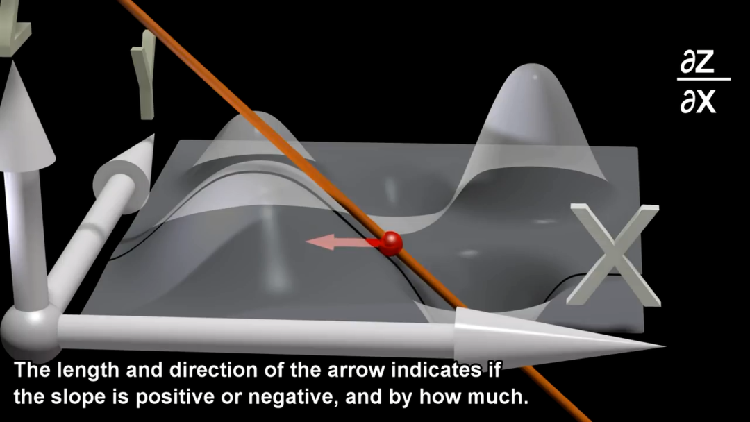 如果是方向不是沿着坐标轴方向,而是任意方向呢?则为方向导数。如下图所示,点 位置处红色箭头方向的方向导数为黑色切线的斜率,来自链接