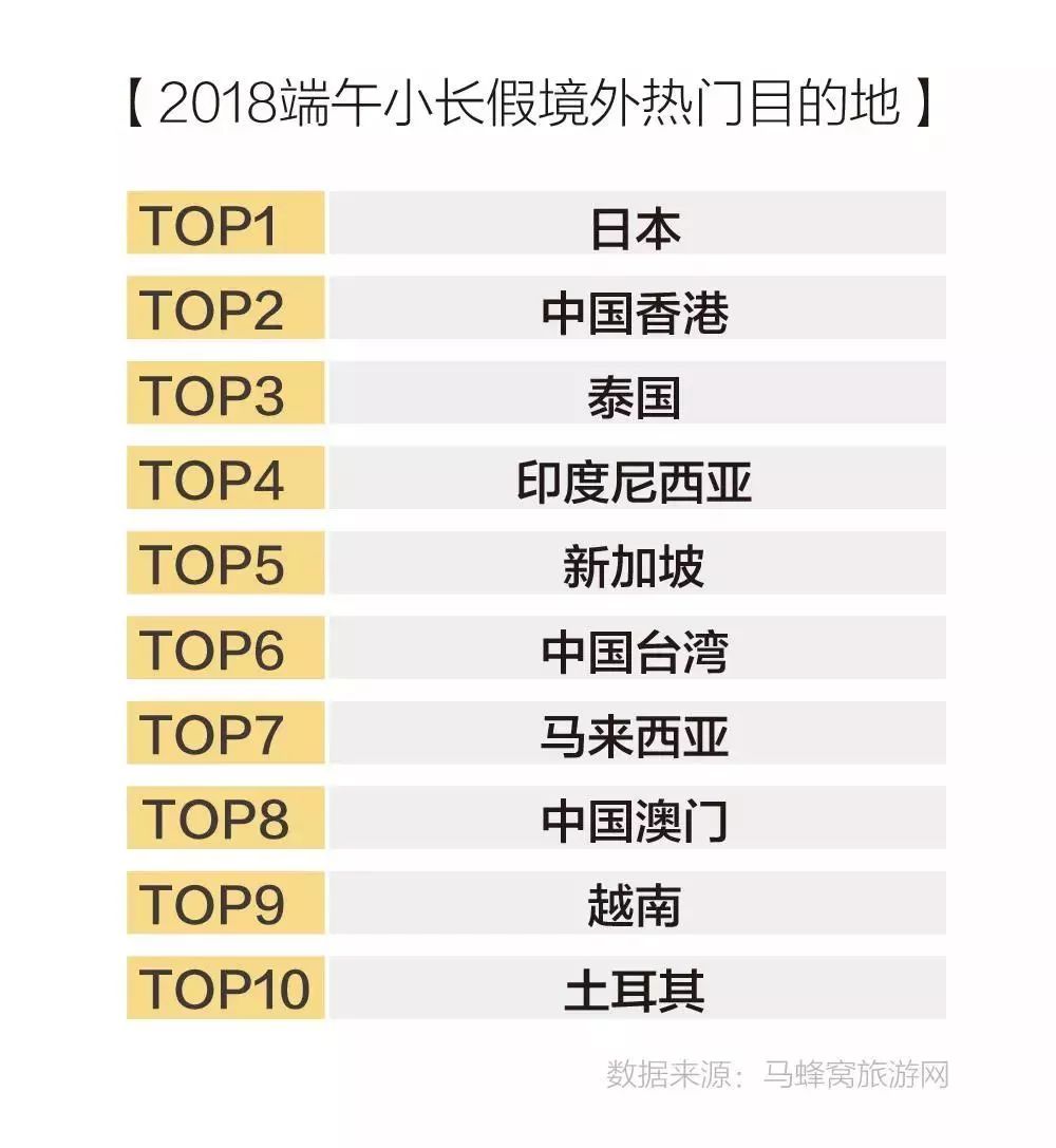 出境游方面,港澳台地区和中国周边的亚洲国家,尤其是东南亚依然是最热门的目的地。