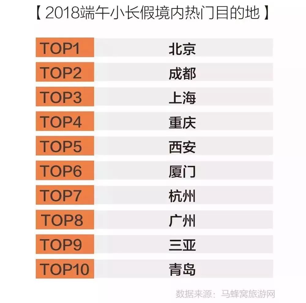 马蜂窝的数据显示,北京、成都、上海等一二线城市依然是最热门的目的地,前10名中有一半是海滨城市。