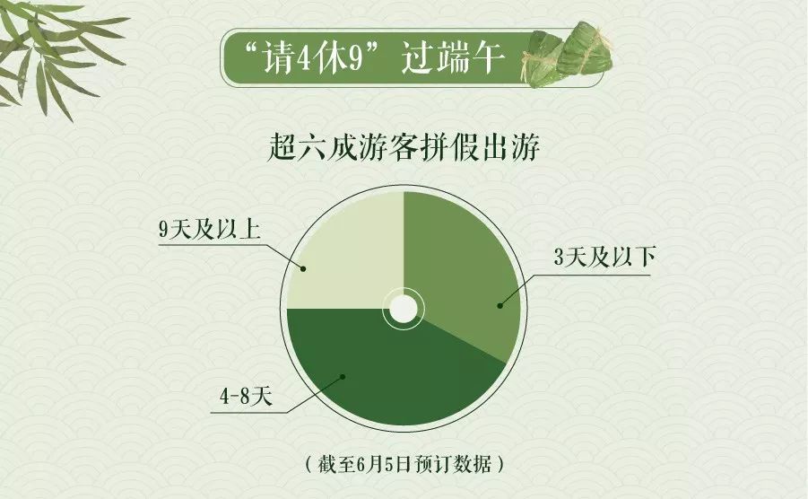 端午节假期之后的一周只有4个工作日,于是,有人直接请4天假,再加上周末,把3天假期变成了9天。这样的请假方式虽然有些“暴力”,但根据途牛网的数据,拼假出游的也并不少。
