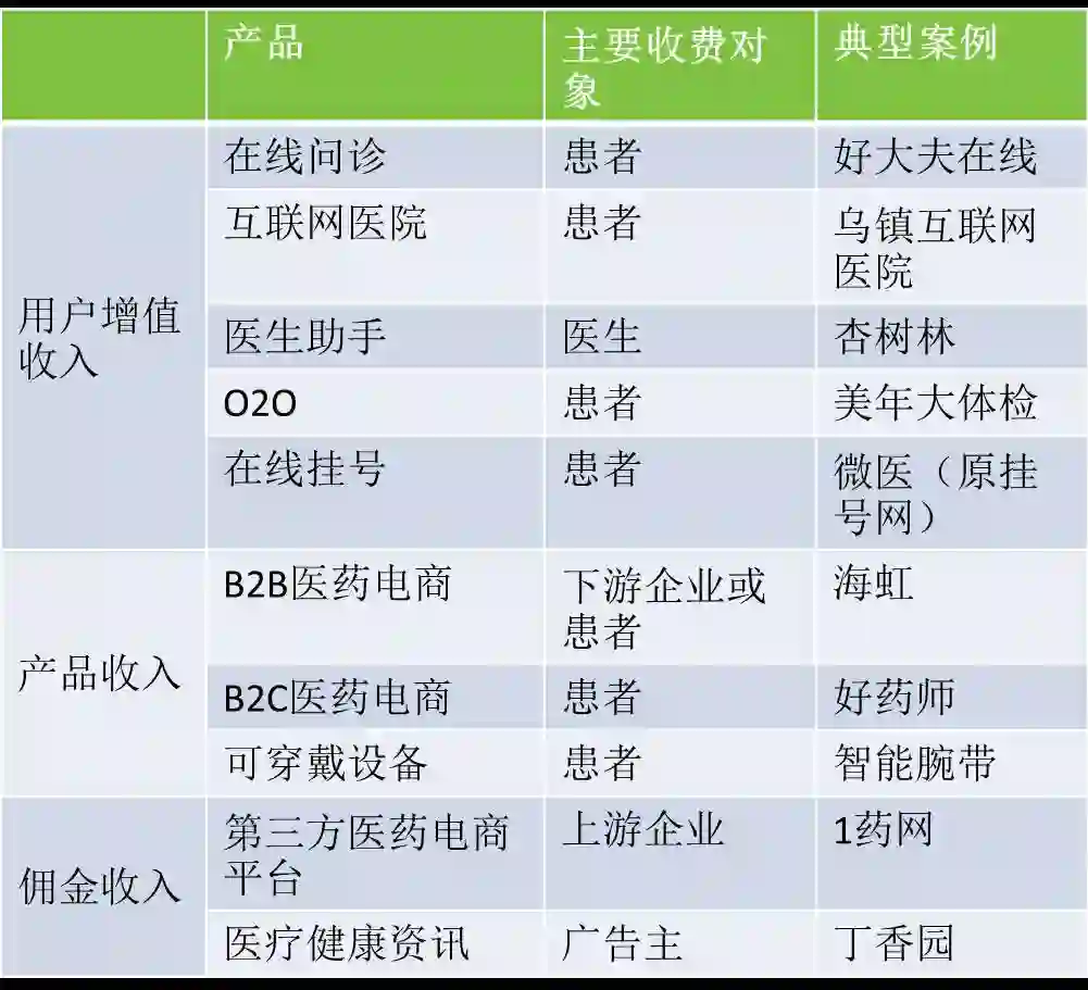 互联网医疗主要产品模式一览