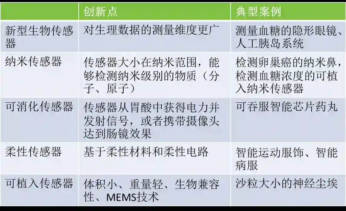• 可穿戴设备,将可穿戴的医疗设备如手环、智能药丸、传感器等直接或者间接销售给用户,同时对用户进行健康管理。